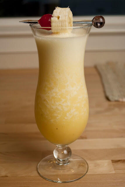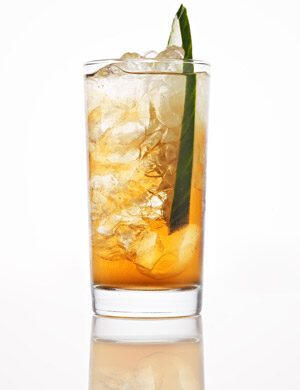 KamiPrickly pineapple mixed with bourbon and ale as the glass is rimmed with frosted coconut. A very tropical drink.